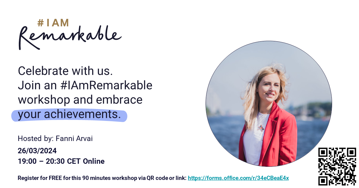 Our co-founder Fanni Arvai just became a #facilitator of the global movement #IAmRemarkable and she is happy to give the first workshop for WoMaC – Women in Maritime Community members and supporters about a journey of self-realization and overcoming struggles to shout out your accomplishments.